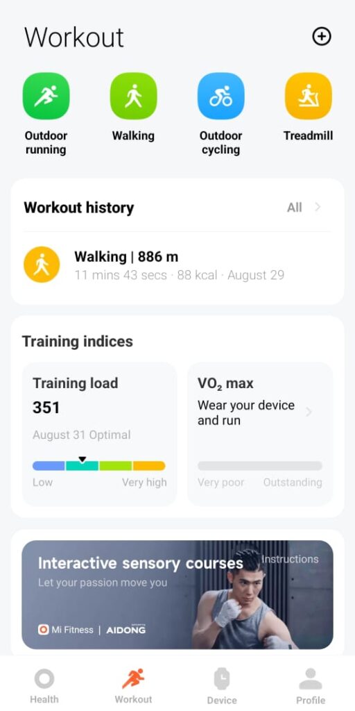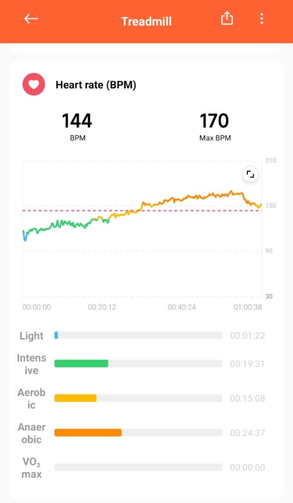 From the Mi Fitness workout, here are the example of chosen telemetry.